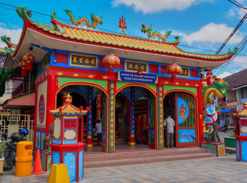Other ethnic groups include Malays, Dayaks, and various Indonesian populations. The Tri Dharma Bumi Raya temple, established in 1878, is one of the oldest temples in the area, dedicated to Tua Peh Kong, the God of the forest. Typically a tranquil city, Singkawang becomes vibrant during the Chinese New Year, culminating in Capgome, the fifteenth day of the celebration, which marks its conclusion.