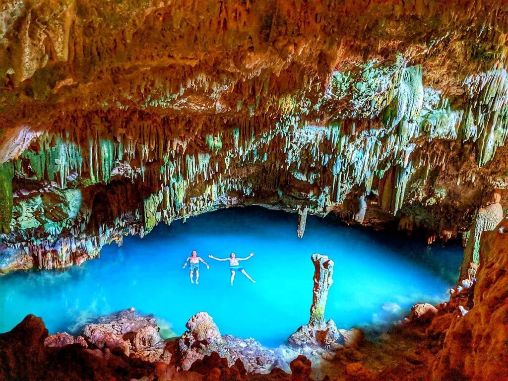 The amount of minerals in the water even makes you float by yourself. At the right time of day the cave becomes even more magical, because the water seems to light up when the sun shines on the water inside the cave.