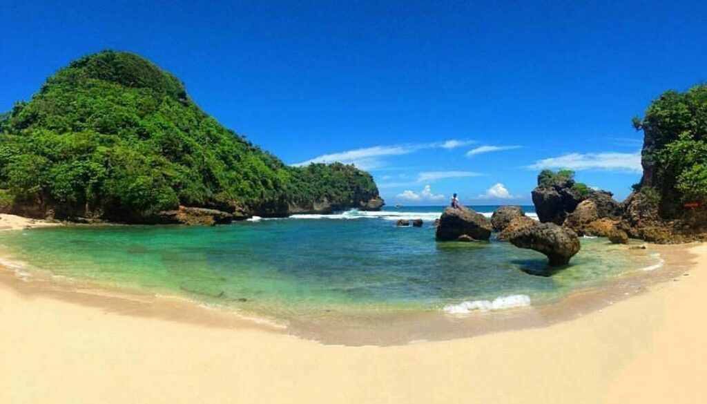 Situated in the Tambak Village, Sumbermanjing Wetan District, Teluk Asmara Beach is surrounded by lush greenery and offers breathtaking views of the Indian Ocean. The beach’s secluded location adds to its charm, providing a sense of peace and tranquility.